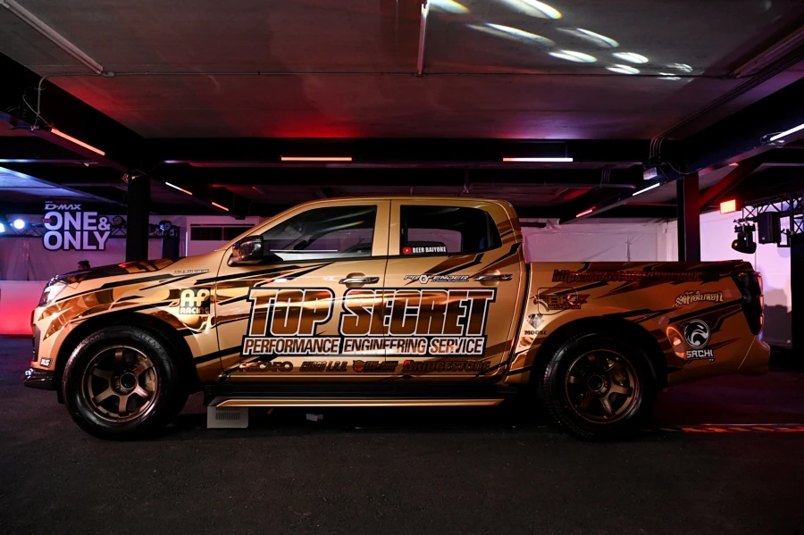 อีกหนึ่งไฮไลท์สำคัญ คือ การโชว์ตัว “TOP SECRET ISUZU D-MAX” รถปิกอัพสีทองสุดเอ็กซ์คลูซีฟ คันแรกของโลก ภายใต้โปรเจกต์ “TOP SECRET THAILAND” โดยคุณเบียร์ ใบหยก อีกทั้งยังได้รับเกียรติจาก มร. สึบาสะ ชินโดะ ดีไซน์เนอร์ชื่อดังที่มีผลงานระดับนานาชาติ จาก nendo Design Studio ประเทศญี่ปุ่น ผู้มีบทบาทสำคัญในการออกแบบและรังสรรค์สนาม “ISUZU 4x4 EXPERIENCE” ใหม่ เพื่อมอบประสบการณ์แบบ Professional 4x4 ที่สมบูรณ์แบบที่สุดในเอเชีย มาร่วมเป็นส่วนหนึ่งของงานเปิดตัวสุดยิ่งใหญ่ครั้งประวัติศาสตร์นี้ด้วย”