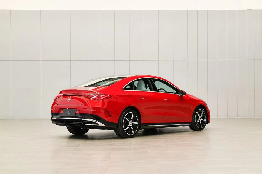 มองจากด้านท้ายจะเห็นโลโก้เบนซ์แบบกลมชัดเจน ให้ภาพลักษณ์สปอร์ตหรู คล้ายรถคูเป้ 2 ประตู จึงตอบโจทย์คนที่ชอบดีไซน์โฉบเฉี่ยวไม่เหมือนซีดานทั่วไป