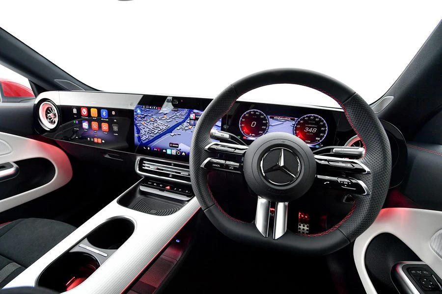 ดีไซน์แผงแดชบอร์ดของ CLA รุ่นนี้ออกแบบเฉพาะ แตกต่างจากรุ่นอื่น มาพร้อม 3 จอหลักขนาดใหญ