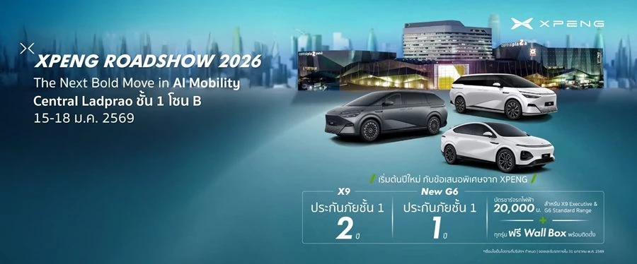 เอ็กซ์เผิง ประเทศไทย ผู้นำเข้าและจัดจำหน่ายยานยนต์ไฟฟ้าอัจฉริยะระดับพรีเมียม-ไฮเทค เอ็กซ์เผิง ภายใต้ บริษัท มิลเลนเนียม กรุ๊ป คอร์ปอเรชั่น (เอเชีย) จำกัด (มหาชน) หรือ MGC-ASIA คึกคักรับปีใหม่ เปิดตัวรถตู้ไฟฟ้าทรงสปอร์ตอัจฉริยะยอดนิยม สีพิเศษ X9 Executive Special Color Edition ประกาศความสำเร็จของ X9 ที่สามารถคว้ายอดจดทะเบียนสะสมอันดับ 1 กลุ่มรถตู้ไฟฟ้าของไทย ในช่วงครึ่งหลังของปี 2568 นอกจากนี้ยังยกทัพ เอ็กซ์เผิง มาครบทุกรุ่น พร้อมนโยบายตรึงราคาแม้โครงสร้างภาษีมีการเปลี่ยนแปลง ในงาน XPENG ROADSHOW 2026 ระหว่างวันที่ 15-18 มกราคม 2569 บริเวณชั้น 1 โซน B ที่ศูนย์การค้าเซ็นทรัล ลาดพร้าว