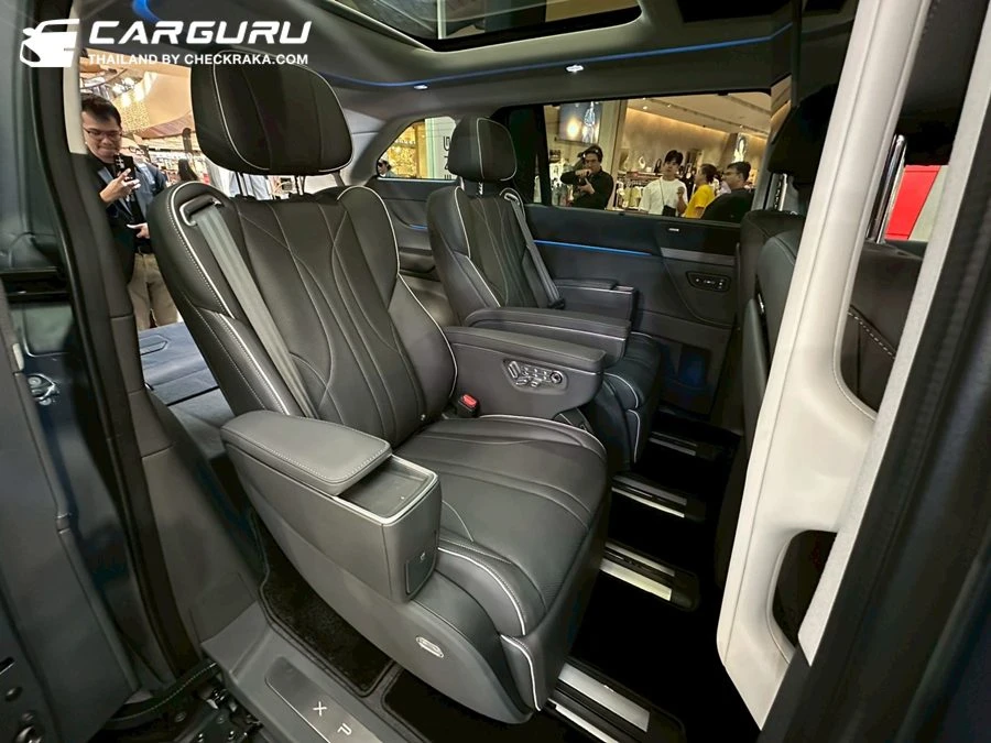 รถตู้ไฟฟ้าทรงสปอร์ตอัจฉริยะ ที่มาพร้อมเฉดสีภายใน Moon Shadow Coffee และ Meteorite Black นั่งสบายด้วยเบาะแถวที่สองแบบโซฟา พร้อมฟังก์ชั่น Zero-Gravity ปรับไฟฟ้าได้ 14 ทิศทาง และช่องทางเดินระหว่างเบาะแถวที่สอง