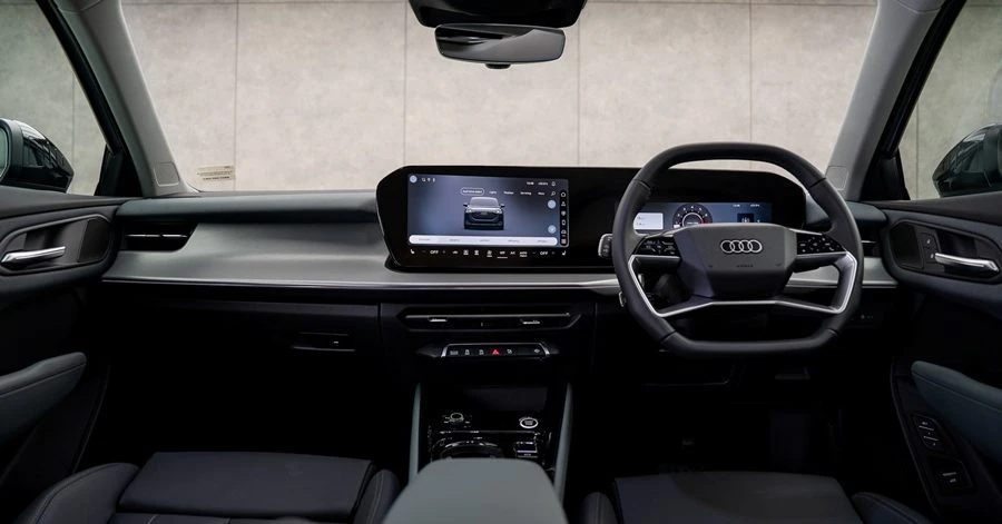 ภายในห้องโดยสารสะท้อนแนวคิด Human-Centric Design ที่ยึดผู้ขับขี่เป็นศูนย์กลาง ผสานดีไซน์ใหม่เข้ากับเทคโนโลยีล้ำสมัยด้วย Curved MMI Panoramic Display ที่ออกแบบมาให้โอบล้อมผู้ขับขี่ ประกอบไปด้วย Audi virtual cockpit plus ขนาด 11.9 นิ้ว และ MMI touch display 12.8 นิ้ว ที่ได้รับการพัฒนา UX/UI หรือการแสดงผลของหน้าจอรูปแบบใหม่ที่อ่านง่าย ใช้งานสะดวกยิ่งขึ้น ช่วยให้ผู้ขับขี่สามารถเข้าถึงข้อมูลสำคัญและระบบควบคุมต่างๆ ได้อย่างเป็นธรรมชาติระหว่างการขับขี่ ขณะเดียวกัน การออกแบบตำแหน่ง New Gearshift Selector บริเวณด้านหลังพวงมาลัย ยังช่วยให้ผู้ขับขี่สามารถควบคุมการเปลี่ยนเกียร์ได้อย่างสะดวกโดยไม่ต้องละมือจากพวงมาลัย พร้อมทั้งช่วยเพิ่มพื้นที่บริเวณคอนโซลกลางให้โปร่งโล่งและใช้งานได้มากยิ่งขึ้น