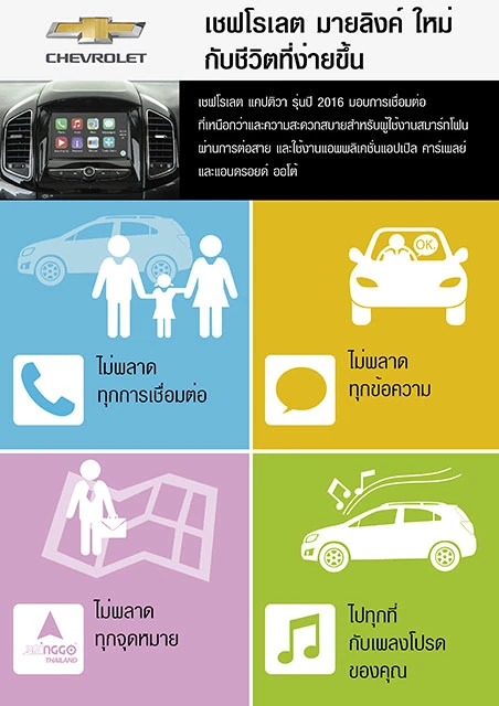 แคปติวาโฉมใหม่มอบการเชื่อมต่อสมาร์ทโฟนที่เหนือกว่าให้แก่ลูกค้าเชฟโรเลต และเกิดขึ้นในช่วงเวลาที่เหมาะสม เนื่องจากยอซโซ (Yozzo) บริษัทวิจัยตลาดด้านโทรคมนาคม ระบุว่า 76.5% ของยอดขายโทรศัพท์กว่า 4.3 ล้านเครื่องในประเทศไทยในไตรมาสแรกของปี 2558 เป็นสมาร์ทโฟน และเกือบทั้งหมดเป็นสมาร์ทโฟนของแอปเปิล และระบบปฏิบัติการแอนดรอยด์