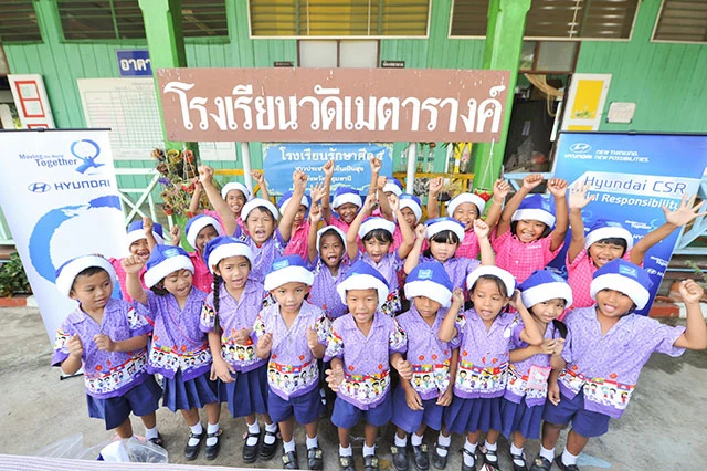Hyundai ประเทศไทย จัดกิจกรรม "Blue Santa" เลี้ยงอาหารน้องๆ โรงเรียนวัดเมตารางค์