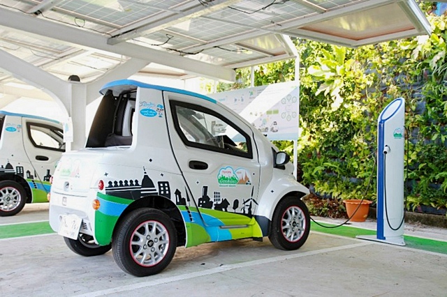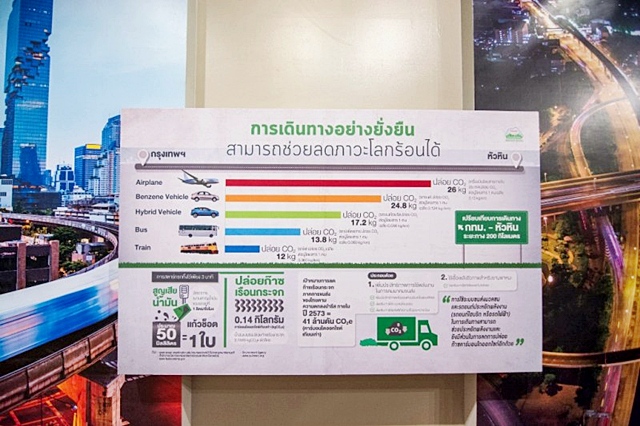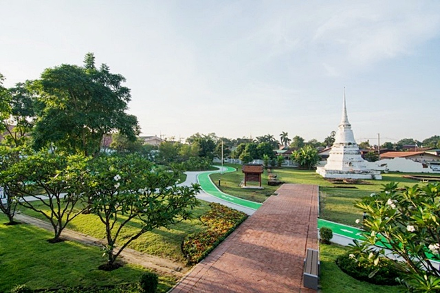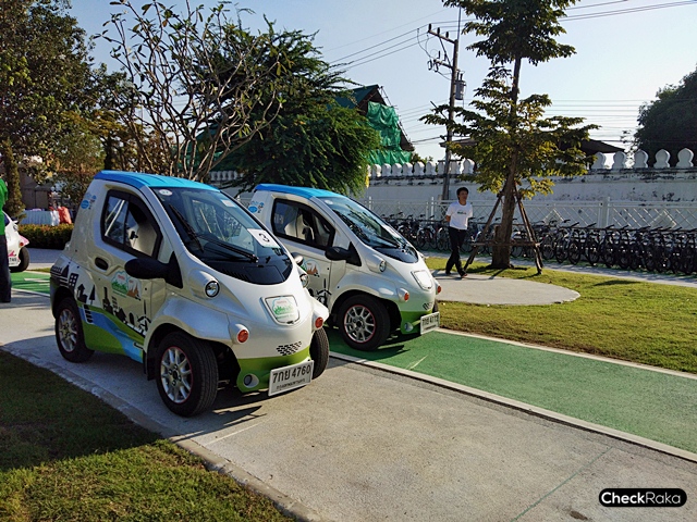 - การเดินทางอย่างยั่งยืน (Sustainable Transportation) ลดการใช้น้ำมันเชื้อเพลิง ด้วยพลังงานทดแทน เช่น รถยนต์ไฮบริด รถไฟฟ้าขนาดเล็ก การใช้จักรยาน และการเดิน ซึ่งในเมืองสีเขียวได้ส่งเสริมการใช้จักรยาน การใช้รถไฟฟ้าขนาดเล็ก HA:MO ในระบบ EV Car Sharing เป็นพาหนะในการเดินทางเชื่อมโยงระหว่างจุดท่องเที่ยวในอยุธยา ซึ่ง Toyota HA:MO จะถูกนำมาวิ่งเป็นต้นแบบแห่งที่ 2 ต่อจากจุฬาลงกรณ์มหาวิทยาลัย โดยพลังงานไฟฟ้าที่นำมาใช้กับ Toyota HA:MO มาจากแผงโซล่าเซลส์เก็บประจุไฟฟ้าไว้ใน เซลล์แบตเตอรี่ของรถยนต์โตโยต้าไฮบริดที่ใช้แล้ว (re-use)โดยมีสถานีชาร์จไฟฟ้า 2 แห่ง ตั้งอยู่ที่ ศูนย์บริการนักท่องเที่ยวอยุธยา และหมู่บ้านญี่ปุ่น