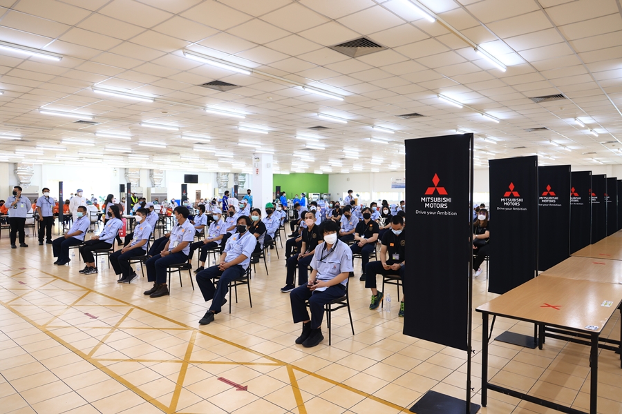 สำหรับโปรแกรมการฉีดวัคซีนให้แก่พนักงานของมิตซูบิชิ มอเตอร์ส ประเทศไทย รวมถึงพนักงานของบริษัทซัพพลายเออร์ที่ทำงานในพื้นที่ของศูนย์การผลิตฯ จะมีการดำเนินการทั้งในส่วนภายใต้ข้อตกลงของโครงการ Factory Sandbox ที่วางเป้าหมายให้มีการฉีดวัคซีน แอสตร้าเซนเนก้า (AstraZeneca) ให้แก่พนักงานที่มีคุณสมบัติครบตามกำหนด รวมกว่า 1,900 คน และในส่วนของบริษัทฯ เอง ที่มีการจัดหาวัคซีนสำหรับพนักงานจากช่องทางต่างๆ ซึ่งด้วยการสนับสนุนของโครงการ Factory Sandbox ทำให้บริษัทฯ จะสามารถบรรลุเป้าหมายของการฉีดวัคซีนให้แก่พนักงานทุกคนจนครบ 2 เข็ม ภายในสิ้นปี 2564 นี้