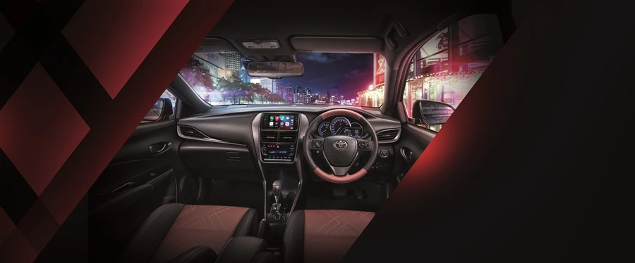 ส่วนดีไซน์ภายใน ก็มีการปรับใหม่ ด้วยการเพิ่ม พวงมาลัยหุ้มหนังนุ่มพิเศษตกแต่งด้วยด้ายสีเทา (เฉพาะ ATIV รุ่น Sport Premium / Sport), พวงมาลัยหุ้มหนังนุ่มพิเศษตกแต่งด้วยด้ายสีฟ้า (เฉพาะ YARIS รุ่น Sport Premium / Sport)