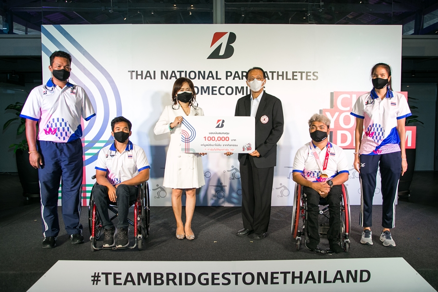 บริดจสโตน ประเทศไทย ต้อนรับ 4 นักกีฬาพาราลิมปิกทีมชาติไทย และในฐานะทีมบริดจสโตน ประเทศไทย พร้อมมอบเงินสนับสนุนแก่ เจมส์-วรวุฒิ แสงอำภา นักกีฬาบอคเชีย ทีมชาติไทย หลังสิ้นสุดภารกิจ ใน โตเกียว 2020 พาราลิมปิกเกมส์ ที่โชว์ฟอร์มอย่างสุดกำลังคว้าเหรียญทอง ประเภททีม ในมหกรรมกีฬาระดับโลกได้เป็นผลสำเร็จ พร้อมส่งมอบเงิน 100,000 บาท จากโครงการ 1 กำลังใจให้ยกกำลัง 10 แก่ มูลนิธิเมาไม่ขับ เพื่อส่งต่อพลังไล่ล่าความฝันนี้ แปรเปลี่ยนเป็นพลังยิ่งใหญ่สู่ผู้พิการในสังคมไทย