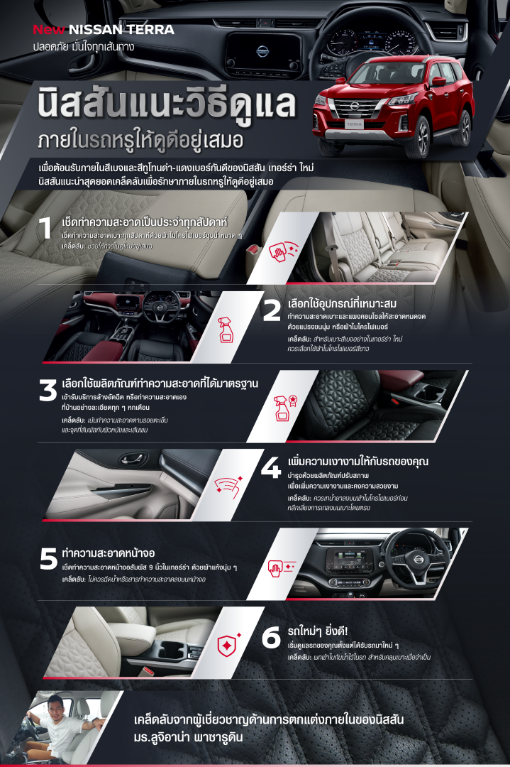 นิสสัน เทอร์ร่า ใหม่ นิสสันแนะนำเคล็ดลับในการทำความสะอาด เพื่อให้ลูกค้าได้เพลิดเพลินกับภายในห้องโดยสารสุดหรู