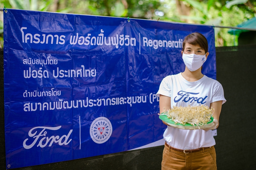ในปีนี้ ฟอร์ดและพีดีเอได้ร่วมกันจัดโครงการอบรมอาชีพ ฟอร์ดฟื้นฟูชีวิต รวมทั้งสิ้น 11 ครั้ง ครอบคลุมพื้นที่ 9 จังหวัด ประกอบด้วย ขอนแก่น, มหาสารคาม, กาญจนบุรี, เชียงราย, บุรีรัมย์, กระบี่, นครราชสีมา, กรุงเทพมหานคร และครั้งสุดท้ายที่ ชลบุรี ผู้เข้าอบรมและผู้นำชุมชนได้เรียนรู้การทำอาชีพเกษตรที่ใช้เวลาเก็บผลผลิตไม่นาน และสามารถนำไปประกอบอาหารหรือค้าขายเป็นอาชีพได้จริง โดยการอบรมเชิงปฏิบัติ ประกอบด้วย 4 ฐานการเรียนรู้ ได้แก่ การเตรียมดินและการเพาะปลูกผักบุ้ง การเพาะเห็ดและการดูแลรักษา การเพาะถั่วงอก และการเพาะทานตะวันงอก ยิ่งไปกว่านั้น อีกหนึ่งกิจกรรมที่เป็นจุดเด่นในปีนี้ก็คือการฝึกสอนวิธีการใช้ช่องทางการสื่อสารแบบออนไลน์ เพื่อนำผลผลิตที่ได้ไปขายและหารายได้เสริม ซึ่งเป็นการพัฒนาทักษะดิจิทัลโดยทีมงานและวิทยากรผู้เชี่ยวชาญ หลังจบการฝึกอบรม ผู้เข้าร่วมกิจกรรมจะได้รับอุปกรณ์และเครื่องมือในการประกอบอาชีพเบื้องต้น ประกอบด้วย ชุดเพาะเห็ดนางฟ้า ชุดเพาะถั่วงอกและชุดเพาะทานตะวันงอก กล้าพืชผักสวนครัว รวมทั้งชุดป้องกันโควิด-19 เพื่อนำไปใช้เพาะปลูก และจุนเจือการบริโภคในครัวเรือนหรือสร้างรายได้ด้วยตัวเองได้ทันที โดยกิจกรรมที่ผ่านมา ผู้นำชุมชนจำนวนมากได้ให้ความสนใจ และมีความตั้งใจที่จะส่งต่อความรู้และทักษะที่ได้รับให้กับครัวเรือนต่างๆ ภายในชุมชนของตนเอง นับเป็นการเสริมแกร่งให้แก่ชุมชน และช่วยให้ครอบครัวที่ได้รับผลกระทบในช่วงโควิด-19 สามารถฟื้นฟูสภาพความเป็นอยู่ได้อย่างทันท่วงที