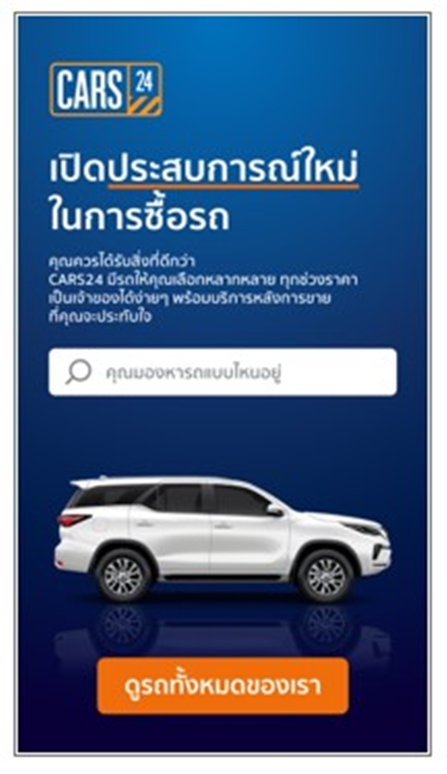 CARS24 (คาร์สทเวนตี้โฟร์) หนึ่งในสตาร์ทอัพ ยูนิคอร์น ด้านออโต้เทคที่เติบโตเร็วที่สุดในเอเชีย และเป็นน้องใหม่ในประเทศไทย พร้อมแล้วที่จะมาสร้างนิยามบทใหม่แก่ตลาดซื้อขายรถมือสองให้ต่างไปจากเดิมเพื่อรองรับทุกจังหวะชีวิตผู้บริโภคที่เปลี่ยนไปในโลกยุคดิจิตอล ซึ่งนับเป็นครั้งแรกที่เราจะเปิดตัวใน งานมหกรรมยานยนต์ ครั้งที่ 38 หรือ มอเตอร์ เอ็กซ์โป 2021 เพื่อแนะนำตัวให้คนไทยได้รู้จัก พร้อมชวนสัมผัสและทดลองใช้งานผ่านแพลตฟอร์มซื้อขายรถยนต์ออนไลน์ของ CARS24 พบรถยนต์มือสองคุณภาพเยี่ยมหลากหลายรุ่น แล้วคุณจะพบกับประสบการณ์ใหม่ที่แสนง่ายดายเพียงปลายนิ้วสัมผัส