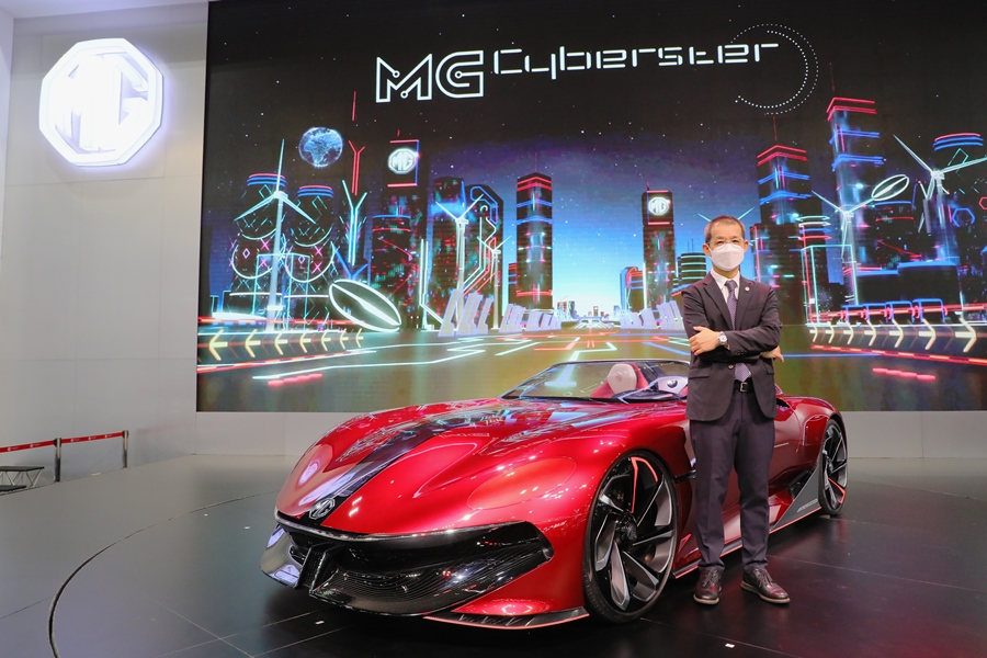 ทั้งนี้ เพื่อตอกย้ำภาพการเป็นผู้บุกเบิกรถยนต์พลังงานไฟฟ้าของเอ็มจี ในงาน Motor Expo 2021 ปีนี้ เอ็มจี ได้แนะนำ MG Cyberster รถยนต์ต้นแบบพลังงานไฟฟ้า 100% สไตล์สปอร์ตแบบ 2 ที่นั่ง ที่ได้รับแรงบันดาลใจมาจาก MGB Roadster รถสปอร์ตในตำนานของเอ็มจี ซึ่งรถยนต์คันนี้จะไม่ใช่เพียงแค่รถยนต์ต้นแบบ แต่เอ็มจีกำลังจะปรับปรุงและพัฒนาให้กลายเป็นรถยนต์พลังงานไฟฟ้าที่ใช้งานได้จริงในอนาคตอันใกล้นี้"