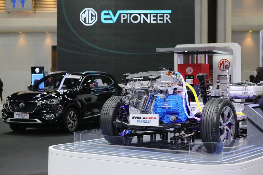 นายพงษ์ศักดิ์ กล่าวเสริมว่า "ปัจจุบันคำว่า EV มักถูกนำไปใช้ร่วมกับคำอื่นๆ จนทำให้เกิดความหมายที่ผิดเพี้ยนไปจากเดิม ดังนั้น ถ้าหากเราพูดถึง EV นั่นต้องหมายถึงรถยนต์พลังงานไฟฟ้า 100% เท่านั้น โดยเอ็มจีได้เริ่มนำรถยนต์ไฟฟ้าต้นแบบ MG E-Motion มาจัดแสดงในงาน Motor Expo แห่งนี้ในปี 2018 และนับจนถึงปัจจุบัน เราได้เปิดตัวรถยนต์พลังงานไฟฟ้ารวม 2 รุ่น ได้แก่ MG ZS EV และ MG EP รถยนต์พลังงานไฟฟ้า 100% ในรูปแบบของ SUV และ Station Wagon ด้วยรูปหลักที่โดดเด่น และสมรรถนะที่ดีเยี่ยม จนทำให้เอ็มจีสามารถครองส่วนแบ่งตลาดรถยนต์พลังงานไฟฟ้าในประเทศไทยได้มากกว่า 90% ตั้งแต่ปี 2019 จนถึงปัจจุบัน