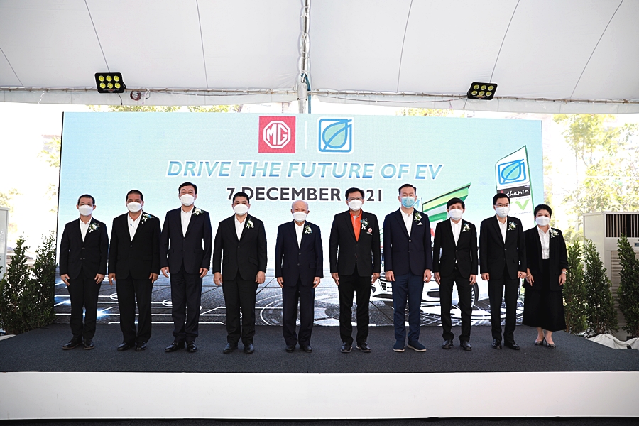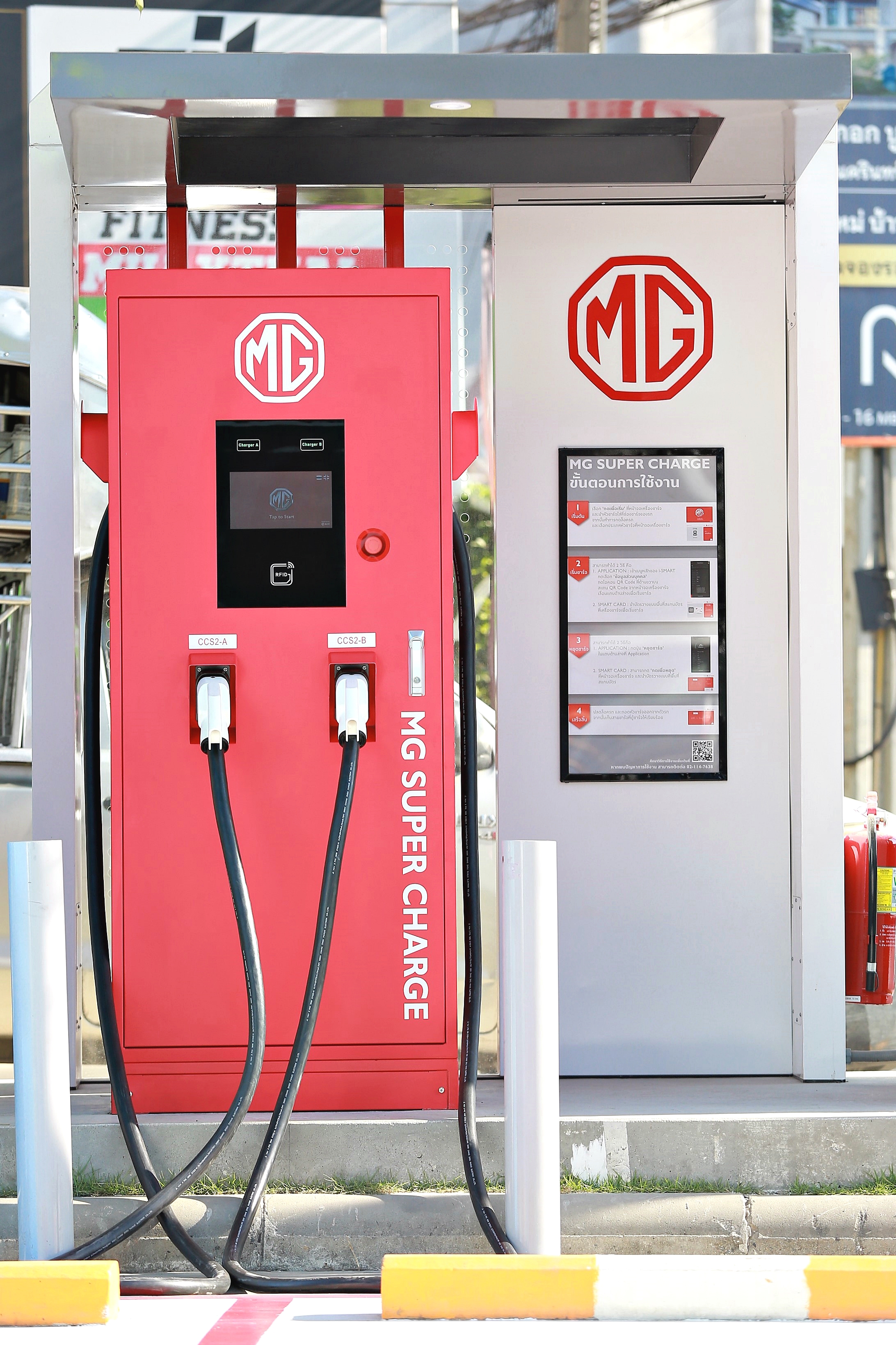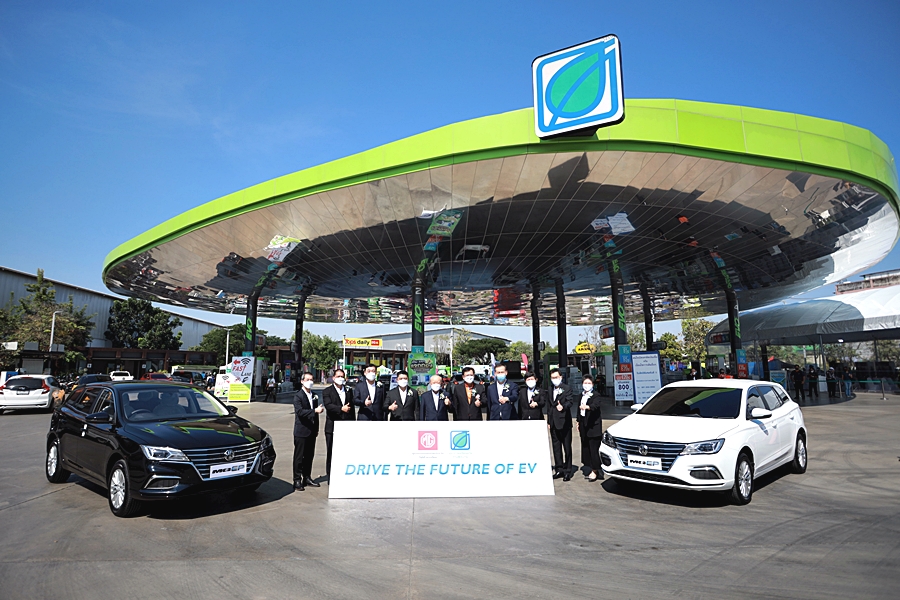 การร่วมมือกับ บริษัท บางจาก คอร์ปอเรชั่น จำกัด (มหาชน) ผู้นำด้านการเปลี่ยนผ่านพลังงาน เพื่อส่งเสริม การใช้งานรถยนต์พลังงานไฟฟ้าร่วมกันด้วยการติดตั้งสถานีชาร์จรถยนต์ไฟฟ้า “MG Super Charge” ในสถานีบริการน้ำมันบางจากจะสร้างความสะดวกสบายให้กับผู้ใช้รถยนต์พลังงานไฟฟ้าเพิ่มมากขึ้น เนื่องจากคนไทยมีความคุ้นชินกับสถานีบริการน้ำมันซึ่งปัจจุบันไม่ได้เป็นเพียงสถานที่สำหรับเติมน้ำมันเท่านั้น แต่ยังได้รับการยกระดับด้วยฟังก์ชั่นไลฟ์สไตล์ เช่น ร้านกาแฟ ร้านอาหาร ซูเปอร์มาร์เก็ต ฯลฯ ซึ่งลูกค้าสามารถเข้าใช้บริการได้ในระหว่างรอการชาร์จรถยนต์พลังงานไฟฟ้าได้เช่นกัน