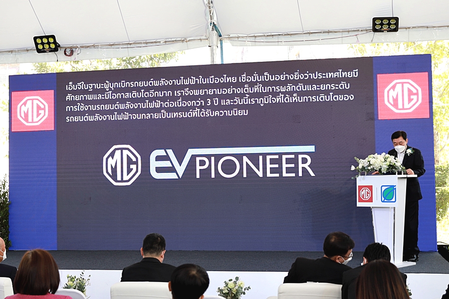 เอ็มจี มุ่งมั่นผลักดันสังคมยานยนต์ไฟฟ้าในประเทศอย่างต่อเนื่องมากว่า 3 ปี ซึ่งตลอดระยะเวลาที่ผ่านมาเอ็มจีไม่ได้เพียงแค่เปิดตัวรถยนต์พลังงานไฟฟ้าสู่ตลาดอย่างต่อเนื่องเท่านั้น แต่ยังเดินหน้าสร้างโครงสร้างพื้นฐานยานยนต์ไฟฟ้าให้ครอบคลุมในทุกมิติควบคู่กันไป วันนี้เราภูมิใจที่ได้เห็นการเติบโตของรถยนต์พลังงานไฟฟ้าจนกลายเป็นเทรนด์ที่ได้รับความนิยม อีกทั้งยังเป็นแรงกระตุ้นสำคัญที่ทำให้ผู้ผลิตรถยนต์หลากหลายแบรนด์เริ่มแนะนำรถยนต์พลังงานไฟฟ้าอย่างจริงจัง รวมไปถึงภาครัฐที่ออกมาตรการเพื่อสนับสนุนการใช้รถยนต์พลังงานไฟฟ้าอย่างชัดเจน”