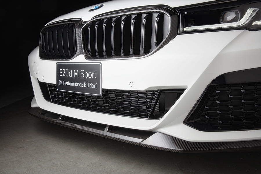 สำหรับชุดอุปกรณ์ตกแต่ง M Performance ในรถยนต์บีเอ็มดับเบิลยู 520d M Sport (M Performance Edition) ใหม่ ประกอบด้วย กระจังหน้าทรงไตคู่คาร์บอนไฟเบอร์ M Performance, สปลิทเตอร์หน้าคาร์บอนไฟเบอร์ M Performance, สปอยเลอร์หลังคาร์บอน, ฝาครอบกระจกคาร์บอน, แถบสติ๊กเกอร์ข้างตัวรถ M Performance และสติ๊กเกอร์สัญลักษณ์ M Performance บริเวณสเกิร์ตข้าง