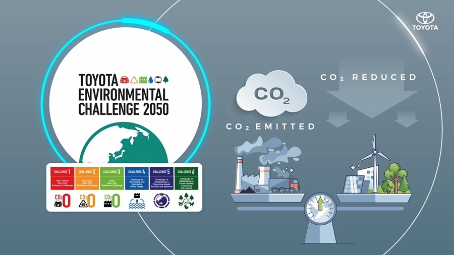 มร. ยามาชิตะ เผยว่า "ก่อนอื่นผมขอเล่าให้ฟังถึงกลยุทธ์ของโตโยต้าในการมุ่งสู่ความเป็นกลางทางคาร์บอน อย่างที่ทุกท่านทราบกันดีว่าโตโยต้ามุ่งมั่นที่จะสร้างความเป็นกลางทางคาร์บอนให้สำเร็จภายในปี 2593