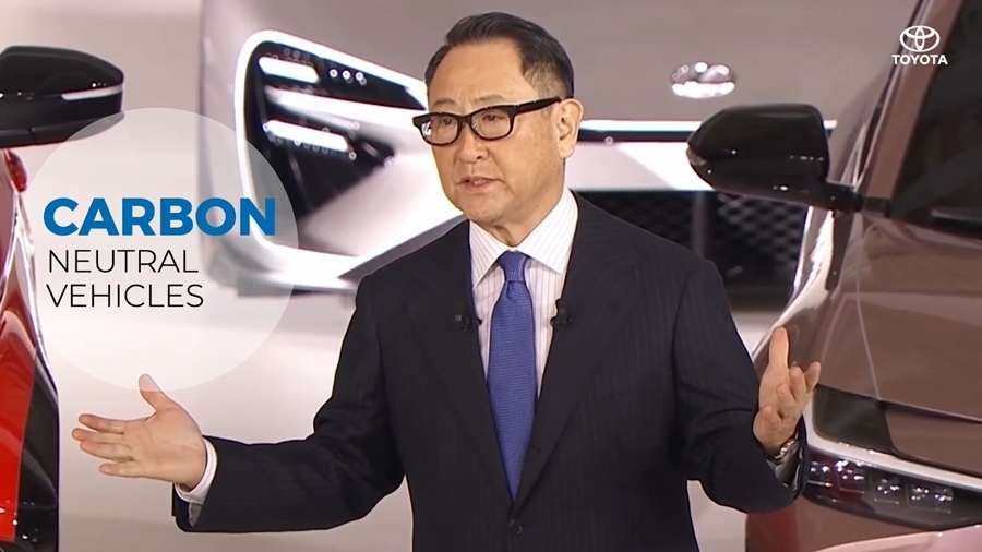 "เรายังเชื่อมั่นว่าหากเราสร้างความเป็นกลางทางคาร์บอนได้สำเร็จ ก็แปลว่าเราได้สร้างโลกใบที่ทุกคนที่อาศัยอยู่นั้นสามารถดำเนินชีวิตต่อไปได้อย่างมีความสุข เราอยากมีส่วนช่วยสร้างโลกแบบนั้นให้เกิดขึ้นจริง อย่างไรก็ตาม เราอาศัยอยู่บนโลกที่มีความแตกต่างหลากหลาย อีกทั้งยังอยู่ในยุคสมัยที่คาดเดาอนาคตได้ยาก ดังนั้นการตอบโจทย์ความต้องการของทุกคนให้ได้อย่างครบถ้วนด้วยตัวเลือกที่มีเพียงหนึ่งเดียวนั้นจึงไม่ใช่เรื่องง่าย โตโยต้าจึงมุ่งเตรียมความพร้อมเพื่อนำเสนอตัวเลือกให้ได้มากที่สุดเท่าที่จะเป็นไปได้ เพื่อตอบสนองความต้องการของลูกค้าทั่วโลก ด้วยแนวทางนี้ทำให้โตโยต้าสามารถบรรลุเป้าหมายของเราในการสร้าง รถยนต์ที่มุ่งสู่ความเป็นกลางทางคาร์บอนและลดการปล่อยคาร์บอน และสอดคล้องกับจุดยืนในการสร้างสรรค์ การขับเคลื่อนสำหรับทุกคน และ ไม่ทิ้งใครไว้เบื้องหลัง”