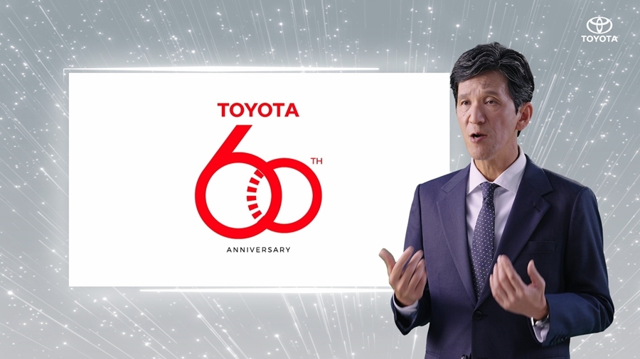 โดยเราได้ออกแบบโลโก้ฉลองครบรอบ 60 ปีที่มาพร้อมกับแท็กไลน์ Move Your World หรือในภาษาไทยคือ ร่วมขับเคลื่อนอนาคต เพื่อสะท้อน พลังและการขับเคลื่อนไปข้างหน้า แสดงให้เห็นว่าในอนาคต โตโยต้าจะนำเสนอยานยนต์พลังงานไฟฟ้าเพื่อมุ่งสู่ความเป็นกลางทางคาร์บอน ตลอดจนสร้างสรรค์เทคโนโลยีการเชื่อมต่อเพื่อให้ลูกค้าได้รับการบริการที่ยอดเยี่ยมสมบูรณ์แบบ”