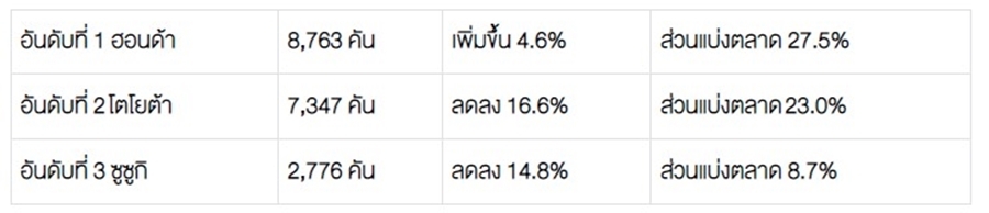 2.) ตลาดรถยนต์นั่ง ปริมาณการขาย 31,917 คัน ลดลง 16.3%