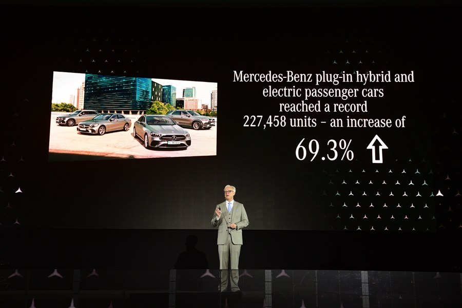 มร. โรลันด์ โฟล์เกอร์ ประธานบริหาร บริษัท เมอร์เซเดส-เบนซ์ (ประเทศไทย) จำกัด กล่าวว่า “ในปี 2564 แม้จะมีความท้าทายหลายประการจากสถานการณ์โควิด-19 แต่ผลการดำเนินงานทั่วโลกของเมอร์เซเดส-เบนซ์ ยังคงแข็งแกร่งด้วยยอดขายที่มากกว่า 2 ล้านคัน โดยรถยนต์ระดับไฮเอนด์ ไม่ว่าจะเป็น Mercedes-Maybach, Mercedes-AMG และ G-Class ได้สร้างสถิติใหม่ในเรื่องยอดขาย ส่วนรุ่นยนต์รุ่น EQS ซึ่งเป็นรถยนต์ไฟฟ้า 100% ที่วิ่งได้ระยะทางไกลที่สุดในตลาดปัจจุบันก็ทำยอดขายได้อย่างดีเยี่ยม ซึ่งดีมานด์จากผู้บริโภคทั่วโลกทำให้เมอร์เซเดส-เบนซ์พร้อมที่จะก้าวสู่ยุคใหม่ของการนำเสนอยานยนต์ไฟฟ้าได้อย่างแข็งแกร่ง เห็นได้จากยอดขายของรถยนต์รุ่น S-Class ที่เพิ่มขึ้น 40% เป็น 87,064 คัน โดยยอดขายในประเทศจีนคิดเป็น 35.5% ของความต้องการรถยนต์รุ่นนี้จากทั่วโลก ในขณะที่ยอดขาย G-Class ก็เพิ่มขึ้นแบบสร้างสถิติใหม่ที่ 41,174 คัน ส่วนยอดขาย Mercedes-AMG ทำได้ 145,979 คัน เพิ่มขึ้น 16.7% เมื่อเทียบกับปีก่อนหน้า สำหรับยอดขาย Mercedes-Maybach อยู่ที่ 15,730 คัน หรือเพิ่มขึ้น 50.7% ด้วยแรงหนุนจากประเทศจีนซึ่งรถยนต์ Mercedes-Maybach สามารถทำยอดขายได้ในอัตราที่มากกว่า 900 คันในแต่ละเดือน”