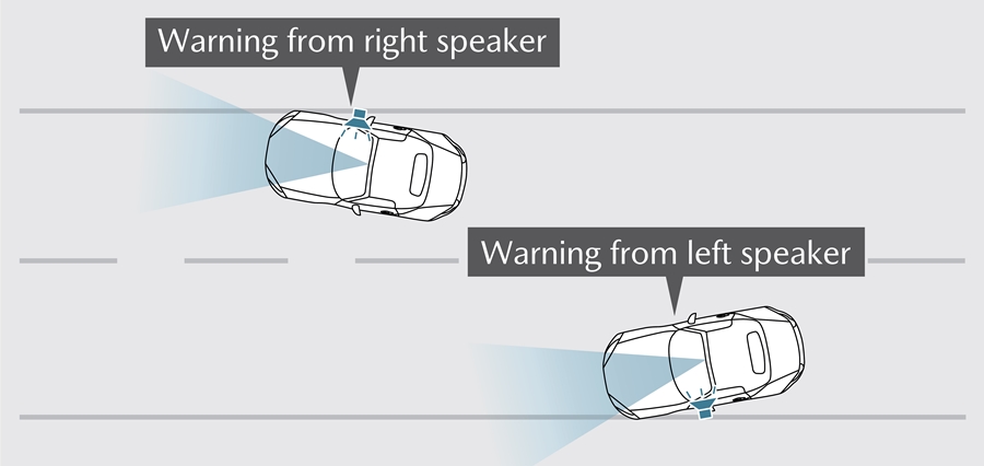 • ระบบเตือนเมื่อมีรถในจุดอับสายตาขณะเปลี่ยนเลน ABSM (Advanced Blind Spot Monitoring)