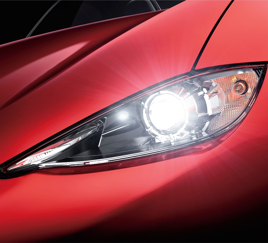 New Mazda MX-5 ยังคงมีความสปอร์ต ทันสมัย มาพร้อมเทคโนโลยีไฟหน้าแบบ LED Projector และไฟส่องสว่างสำหรับการขับขี่เวลากลางวัน Daytime Running Lamp ตกแต่งด้วยล้ออัลลอยขนาด 17 นิ้ว สีดำเมทัลลิค พร้อมคิ้วบันไดกันรอยสเตนเลส