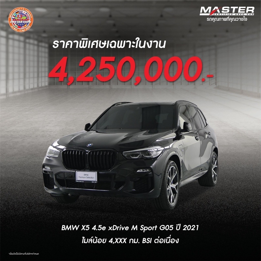 • BMW X5 4.5e xDrive M Sport (G05) ปี 2021 ราคา 4.25 ล้านบาท รถปีใหม่ เลขไมล์น้อยเพียง 4,000 กว่ากิโลเมตร พร้อม BSI ต่อเนื่อง (รถใหม่รอ 3 เดือน)