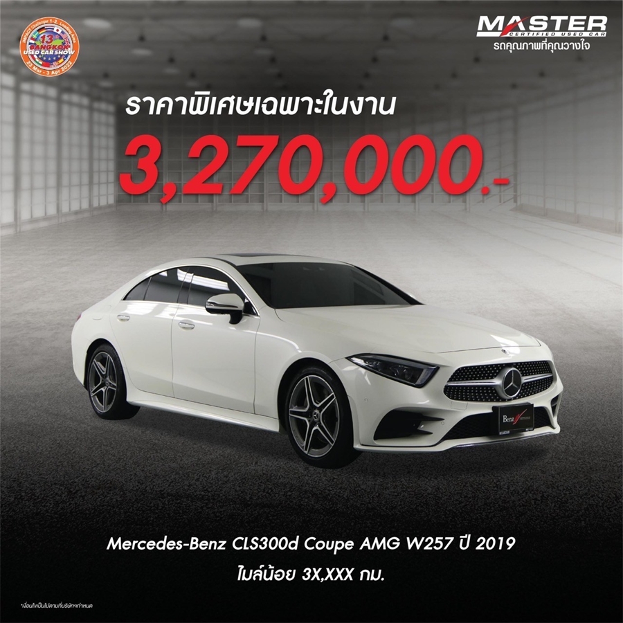 • Mercedes-Benz CLS300d Coupe AMG (W257) ปี 2019 ราคา 3.27 ล้านบาท เลขไมล์เพียง 30,000 กว่ากิโลเมตร โดยเครื่องยนต์สเปคนี้ไม่มีจำหน่ายแล้วในปัจจุบัน
