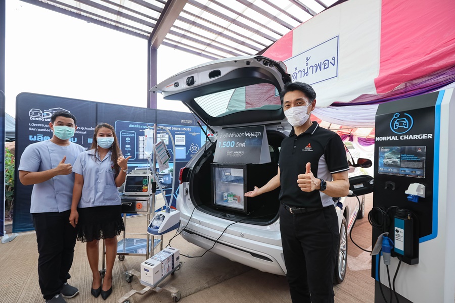 มิตซูบิชิ เอาท์แลนเดอร์ พีเอชอีวี จำนวน 1 คัน ให้แก่โรงพยาบาลน้ำพองได้นำไปใช้สำหรับกิจกรรมทางการแพทย์ รถยนต์ไฟฟ้าที่เป็นมิตรกับสิ่งแวดล้อมรุ่นนี้ สามารถจ่ายกำลังไฟได้สูงสุด 1,500 วัตต์ ให้แก่อุปกรณ์ไฟฟ้าเพื่อใช้ในกิจกรรมนอกบ้าน