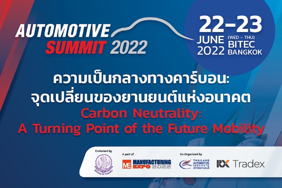 โดยการจัดงาน Automotive Summit 2022 ในปีนี้ สถาบันยานยนต์เล็งเห็นว่า อุตสาหกรรมยานยนต์ถือเป็นหนึ่งในวิถีแห่งการเดินทาง ที่จะต้องปรับและพัฒนาเปลี่ยนแปลงเทคโนโลยีให้สามารถตอบสนองต่อเป้าหมายของการมุ่งสู่ความเป็นกลางทางคาร์บอน เพื่อช่วยการลดปัญหา ภาวะโลกร้อน จากก๊าซเรือนกระจก จึงเป็นที่มาของการสัมมนาทางวิชาการ Automotive Summit ในหัวข้อ “ความเป็นกลางทางคาร์บอน : จุดเปลี่ยนของยานยนต์แห่งอนาคต” Carbon Neutrality : A Turning Point of the Future Mobility ซึ่งภายในงานปีนี้จะได้พบกับหัวข้อสัมมนาที่น่าสนใจ อาทิ นโยบาย และวิสัยทัศน์ด้านยานยนต์เพื่อมุ่งสู่ยานยนต์คาร์บอนต่ำ แนวทางการดำเนินธุรกิจและการพัฒนาเทคโนโลยีของบริษัทชั้นนำต่างๆ การปรับกระบวนทัศน์ใหม่ของผู้ผลิตยานยนต์ ตั้งแต่กระบวนการออกแบบผลิตภัณฑ์ การผลิต ไปจนถึงการจัดการซาก เพื่อให้บรรลุเป้าหมายของความเป็นกลางทางคาร์บอน และที่ขาดไม่ได้คือเรื่องมาตรฐานและการทดสอบยานยนต์เชื่อมต่อและขับขี่อัตโนมัติ (CAV) และยานยนต์ไฟฟ้า