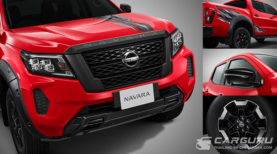 นิสสัน นาวารา แบล็ค อิดิชั่น ใหม่ มาในโฉมที่เข้ม แกร่ง มากขึ้นกับชุดแต่งสีดำ ให้อารมณ์สปอร์ตทั้งภายนอกภายใน จัดเต็มกับชุดแต่งสีดำสุดเท่ตั้งแต่กระจังหน้า แบบ interlock กระจกข้าง มือจับประตู กันชนหน้าด้านล่าง มือจับประตูท้าย และซุ้มล้อ นอกจากนี้ ยังติดตั้งเสาอากาศแบบครีบฉลามที่ดูทันสมัยและมีประสิทธิภาพ และสติ๊กเกอร์ตกแต่งสีดำรอบคัน รวมถึง ล้ออัลลอยสีดำเข้มลายใหม่ขนาด 18 นิ้ว เพิ่มสไตล์เท่ และสะท้อนคุณสมบัติแกร่งที่พร้อมขับขี่แบบสปอร์ตในทุกเส้นทาง เสริมจุดเด่นของการเป็นรถกระบะที่ช่วยให้ผู้ขับขี่ใช้ชีวิตแบบที่ไม่มีใครกล้าคิด