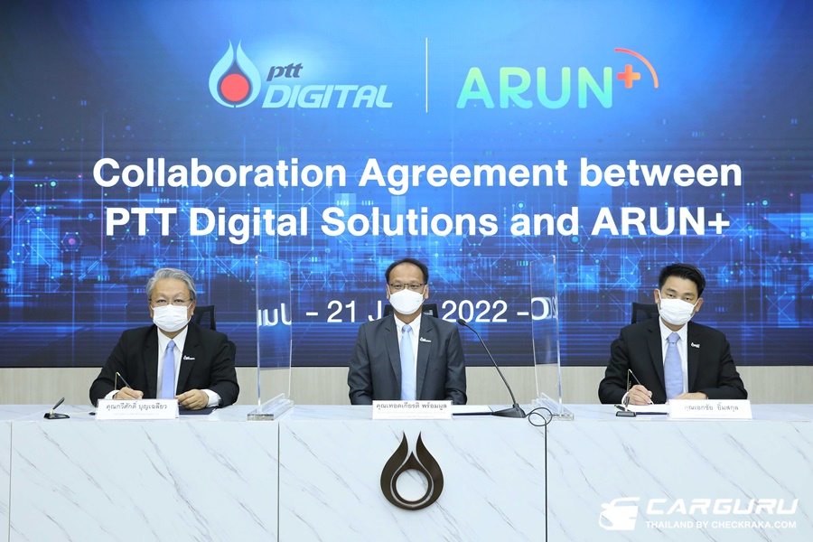 นายเทอดเกียรติ พร้อมมูล รองกรรมการผู้จัดการใหญ่กลยุทธ์องค์กรและความยั่งยืน บริษัท ปตท. จำกัด (มหาชน) และประธานกรรมการ ( คนกลาง) บริษัท พีทีที ดิจิตอล โซลูชั่น จำกัด เป็นประธานในการลงนามความร่วมมือระหว่าง บริษัท พีทีที ดิจิตอล โซลูชั่น จำกัด ผู้ให้บริการเทคโนโลยีสารสนเทศและการสื่อสารของกลุ่ม ปตท. และ บริษัท อรุณ พลัส จำกัด โดยมี นายกวีศักดิ์ บุญเฉลียว กรรมการผู้จัดการ (ที่ 1 จากซ้าย) บริษัท พีทีที ดิจิตอล โซลูชั่น จำกัด และนายเอกชัย ยิ้มสกุล กรรมการผู้จัดการ (ที่ 1 จากขวา) บริษัท อรุณ พลัส จำกัด ผู้ดำเนินธุรกิจด้าน EV Value Chain รองรับการขยายฐานธุรกิจยานยนต์ไฟฟ้าครบวงจร ลงนามบันทึกความร่วมมือ(MOU) ในการติดตั้งระบบ Hermes Platform ซึ่งเป็นระบบควบคุมและติดตามยานพาหนะแบบครบวงจร ครอบคลุมฟังก์ชั่น GPS Tracking เพื่อระบุตำแหน่งพิกัดรถโดยสาร ระยะเวลาที่รถโดยสารจะเข้าถึงสถานีจอดรับ รวมถึงติดตามพฤติกรรมของพนักงานขับรถ เพื่ออำนวยความสะดวก และเพิ่มความปลอดภัยให้แก่ผู้โดยสาร โดยจะนำร่องศึกษาการใช้งานระบบฯ กับรถโดยสารไฟฟี่ให้บริการแก่พนักงานกลุ่ม ปตท. และประชาชนทั่วไป ที่มาติดต่องาน ณ ศูนย์เอนเนอร์ยี่คอมเพล็กซ์ (EnCo) เพื่อนำข้อมูลมาพัฒนาการให้บริการให้มีประสิทธิภาพมากยิ่งขึ้น