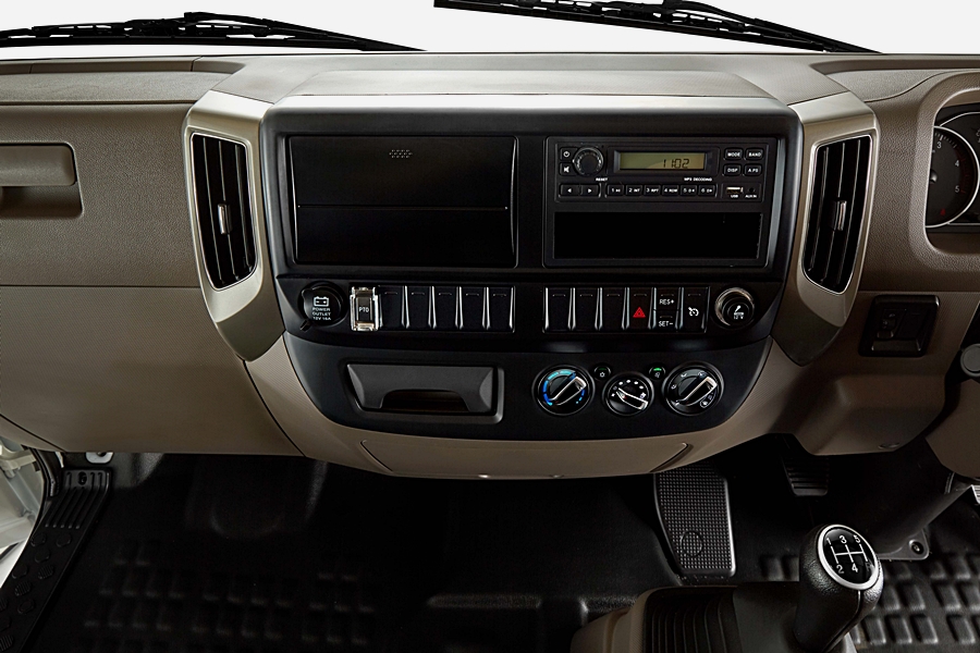 ALL NEW CP FOTON AUMARK FLEX เหนือกว่าด้วยห้องโดยสารที่ออกแบบใหม่ทั้งหมด กว้างกว่าทุกมิติ ให้ความรู้สึกเหมือนขับรถ Passenger ทั่วไป ด้วยวัสดุเกรดพรีเมี่ยม พร้อมอุปกรณ์อำนวยความสะดวกครบครัน ไม่ว่าจะเป็น กระจกไฟฟ้าระบบออโตเมติกทั้งผู้ขับและผู้โดยสาร เรือนไมล์ใหม่ พร้อมจอแสดงผลแบบ LCD ขนาดใหญ่ 3.2 นิ้ว แสดงการทำงานของเครื่องยนต์ และระบบเพื่อความปลอดภัย พวงมาลัยดีไซน์ใหม่ แบบ 4 ก้าน ทำให้ควบคุมรถได้คล่องตัวแม้ในทางแคบ ระบบเครื่องปรับอากาศใหม่หมด สะดวกสบายด้วยปุ่มปรับไฟฟ้า เย็นฉ่ำทั่วถึง พร้อมกันนี้ยังให้ความสะดวกสบายด้วยเบาะนั่งระดับพรีเมี่ยม ตัดรับเข้าสรีระสำหรับผู้ขับขี่ ช่วยลดความเมื่อล้า โดยสามารถปรับองศาการนั่งได้หลากหลาย สะดวกสบายสุดในการขึ้นลงรถด้วยประตูปรับได้ 3 ระดับที่สามารถเปิดได้กว้างสุดถึง 90 องศา และที่เหนือไปกว่านั้นคือความเงียบในห้องโดยสารที่ให้ความเงียบสุด 65dB ปิดกั้นเสียงรบกวนจากภายนอกด้วยวัสดุกันเสียง และซีลยางขอบประตูมาตรฐานยุโรป