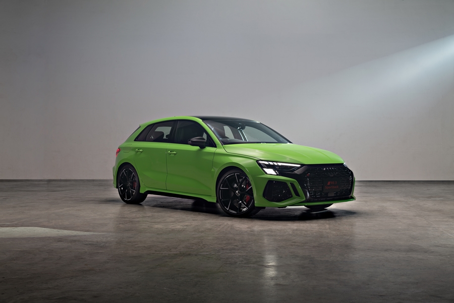 The New Audi RS3 Sportback รถซูเปอร์คาร์ไซส์คอมแพ็ค เร้าใจเหมือนอยู่ในสนามแข่ง และตอบโจทย์การใช้งานได้ทุกวัน ราคา 5.399 ล้านบาท มีให้เลือก 6 สี คือ Glacier white, Mythos black, Python yellow, Tango red, Kyalami green และ Kemora grey เปิดให้จองพร้อมกันตั้งแต่วันนี้เป็นต้นไปที่โชว์รูมอาวดี้ทั่วประเทศ