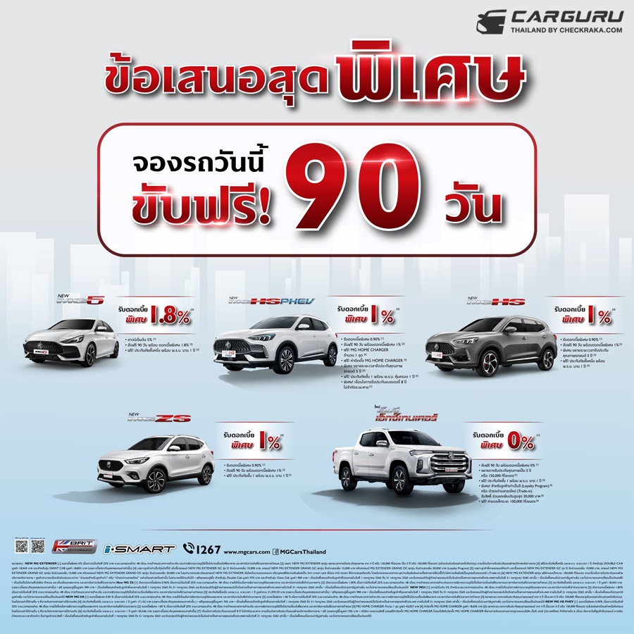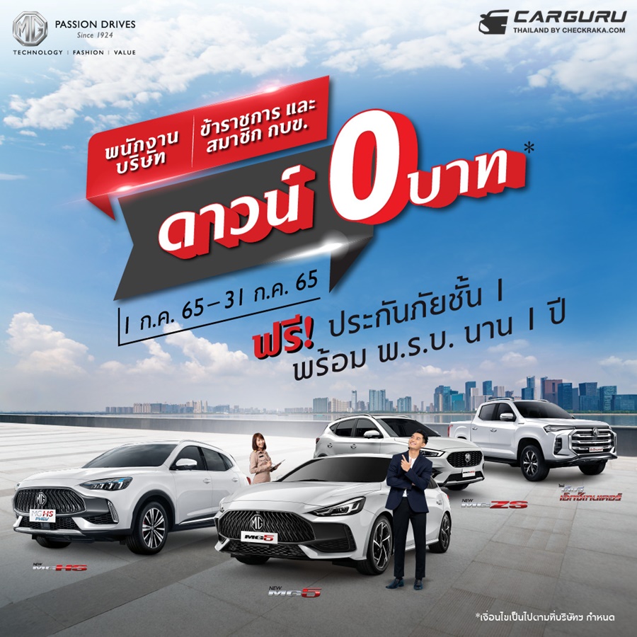 • ดาวน์ 0 บาท พร้อมผ่อนนานสูงสุด 84 เดือน สำหรับรถยนต์เอ็มจีทุกรุ่น ยกเว้นรุ่น NEW MG EP Plus และ NEW MG ZS EV*