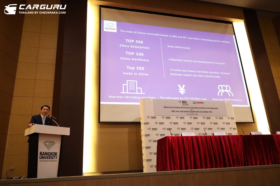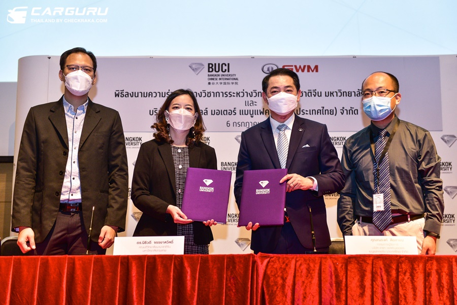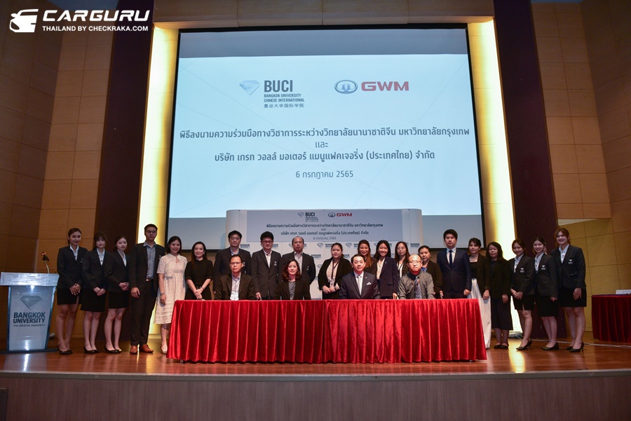 เกรท วอลล์ มอเตอร์ และวิทยาลัยนานาชาติจีน มหาวิทยาลัยกรุงเทพ ลงนามบันทึกข้อตกลงความร่วมมือ (MOU) เพื่อร่วมสร้างความเชี่ยวชาญให้กับบัณฑิต พร้อมส่งเสริมการผลิตผลงานวิชาการ ควบคู่ไปกับการสร้างโอกาสในการพัฒนาความรู้และประสบการณ์จริงทางธุรกิจเพื่อนำมาต่อยอดและใช้ประโยชน์ได้จริง ตอกย้ำความมุ่งมั่นของบริษัทที่จะก้าวสู่การเป็นผู้นำด้านยานยนต์ไฟฟ้า (xEV leader) ควบคู่ไปกับการให้ความร่วมมือกับภาคส่วนต่างๆ เพื่อพัฒนาอุตสาหกรรมยานยนต์ไทยให้เติบโตอย่างมั่นคงและยั่งยืนต่อไป