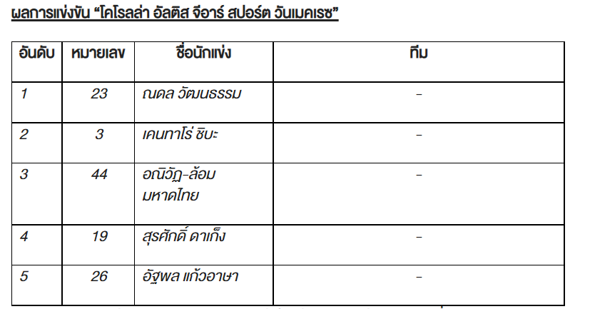 สำหรับใครที่พลาดชมสนามแรกไปก็ไม่ต้องเสียใจ เพราะเขาจัดการแข่งขันกันถึง 5 สนาม เลยทีเดียว ซึ่งจะมีสนามภูเก็ต เชียงใหม่ และบุรีรัมย์