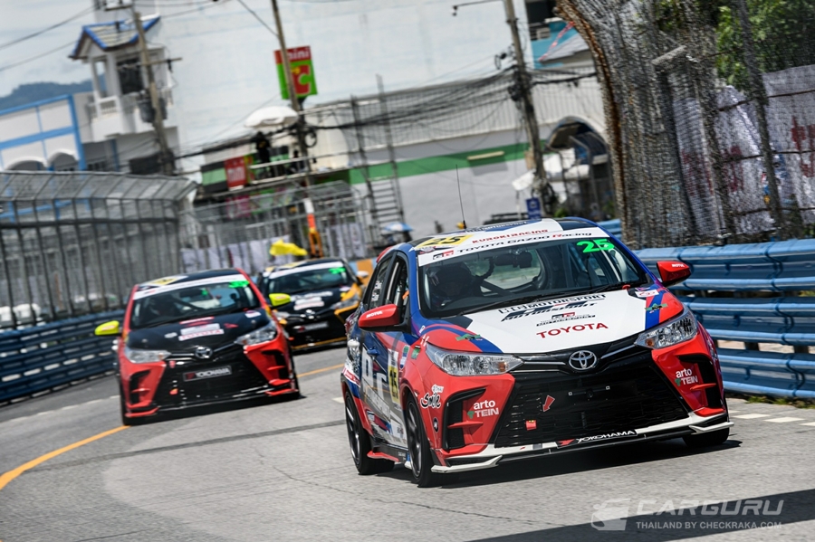 สนุกกันต่อในรุ่น โคโรลล่า อัลติส จีอาร์ สปอร์ต วันเมคเรซ ที่มาพร้อมกับตัวถังที่มีความแข็งแกร่งสูง และพลังของเครื่องยนต์ Dual VVT-i 1,800 ซีซี ตลอดจนโครงสร้าง TNGA ท่ามกลางการขับเคี้ยวที่ต้องวัดกันทั้งความสามารถ สมาธิ และความอึด โดยไม่มีใครยอมใคร ผลปรากฏว่าแชมป์สนามแรกตกเป็นของ “ณดล วัฒนธรรม” หมายเลข 23 ตามมาด้วย “เคนทาโร่ ชิบะ” หมายเลข 3 เป็นอันดับที่ 2 และอันดับที่ 3 ได้แก่ “อณิวัฏ ล้อมมหาดไทย” หมายเลข 44