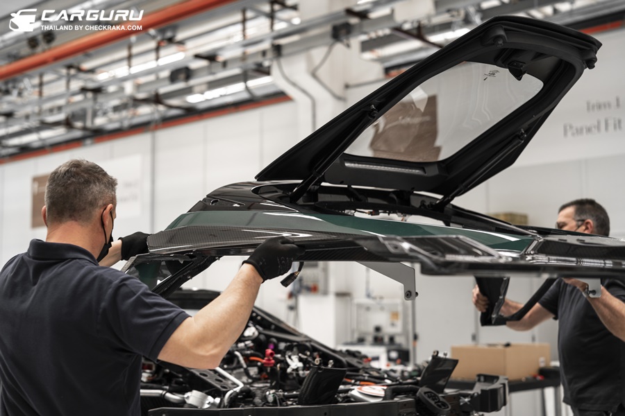 ส่วนประตูแบบ butterfly door ซึ่งมีความซับซ้อนในแง่การออกแบบและเป็นส่วนสำคัญในโครงสร้างของรถ ก็ติดตั้งในโซนนี้ด้วยเช่นกันเป็นเวลา 2 วัน โดยใช้อุปกรณ์ติดตั้งอีกตัวหนึ่งที่รับน้ำหนักประตูและเอียงในทิศทางต่าง ๆ ได้ เพื่อให้ติดตั้งได้อย่างสมบูรณ์แบบ ต่อมาจะเป็นส่วนของการตรวจสอบ โดยใช้ซอฟต์แวร์และเครื่องมือพิเศษเพื่อตรวจสอบว่ารถเป็นไปตามมาตรฐาน เพื่อให้แน่ใจว่าฟังก์ชันการทำงานจริงจะทำงานได้ตามที่ควรจะเป็น ทั้งในเรื่องการชาร์จแบตเตอรี่ ระบบสาระบันเทิง และ SUONO PURO ซึ่งเป็นซาวด์คอนเซปต์อันเป็นเอกลักษณ์ของแบรนด์