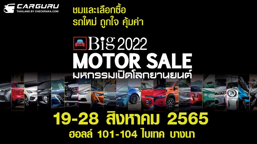 กำหนดการแสดงงาน Big Motor Sale 2022 ตั้งแต่วันศุกร์ที่ 19 – วันอาทิตย์ที่ 28 สิงหาคม 2565 (วันธรรมดา 12.00 น. – 21.00 น./วันเสาร์-อาทิตย์ 11.00 น. – 21.00 น.)