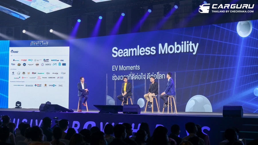 ปิดท้ายที่การเสวนาในหัวข้อ “The World of Seamless Mobility โลกแห่งการเคลื่อนที่อย่างไร้รอยต่อ” ซึ่งมีผู้ร่วมเสวนา ได้แก่ นายบุญมา พนธนกรกุล รองกรรมการผู้จัดการใหญ่ธุรกิจค้าปลีกน้ำมัน โออาร์, นายสุรเดช ทวีแสงสกุลไทย ประธานกรรมการ บริษัท ขอนแก่นพัฒนาเมือง จำกัด (เคเคทีที), นายพชร อารยะการกุล ประธานเจ้าหน้าที่บริหาร บริษัท บลูบิค กรุ๊ป จำกัด (มหาชน) และนางธารินี สุทธิปริญญานนท์ นายกสมาคมการค้าผู้แทนจำหน่ายสถานีบริการน้ำมันพลังไทย โดยนายบุญมา เปิดประเด็นในเรื่องนี้ก่อนว่า “เรื่อง Seamless Mobility เป็นหนึ่งในพันธกิจของโออาร์ที่ต้องการส่งเสริมให้คนไทยสามารถใช้ชีวิตได้อย่างเต็มที่ในทุกการเดินทางด้วยความสะดวกแบบไร้รอยต่อ ผ่านการพัฒนาและยกระดับการทำงาน โดยเฉพาะการขยายสถานีชาร์จจนครบ 7,000 จุดชาร์จทั่วประเทศภายในปี 2030 เพื่อให้ลูกค้ามีความมั่นใจต่อการเปลี่ยนผ่านสู่การใช้รถ EV ในอนาคต”