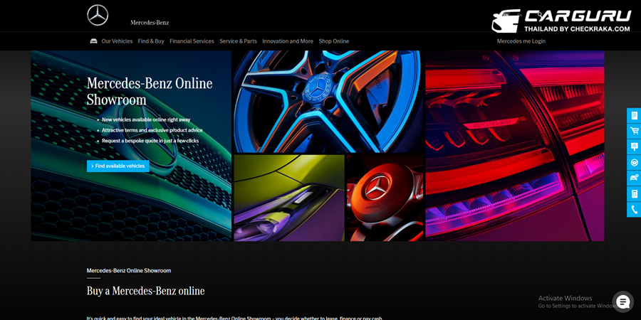 www.mercedes-benz.co.th โดยลูกค้าสามารถเริ่มต้นการจับจองรถยนต์เมอร์เซเดส-เบนซ์ได้ตั้งแต่หน้าแรก โดยคลิกที่หัวข้อ