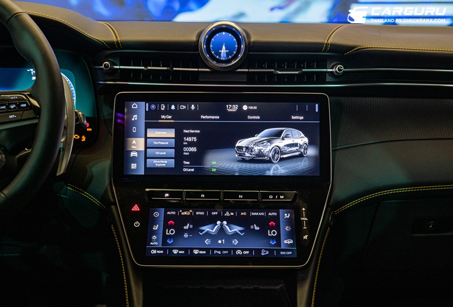 พร้อมทัชสกรีนอเนกประสงค์แบบจอคู่บริเวณกลางแดชบอร์ด จอบนมีขนาด 12.3 นิ้ว และจอล่าง 8.8 นิ้ว ใหญ่สุดเท่าที่เคยติดตั้งในรถยนต์ มาเซราติ