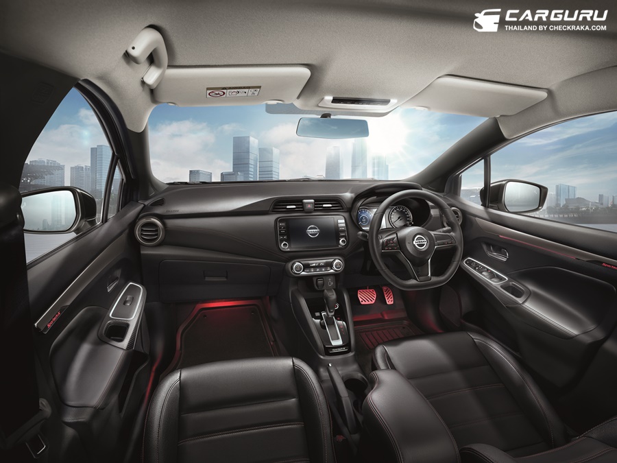 เช่น เบาะหน้า ฐานคันเกียร์ พรมปูพื้น และแป้นเหยียบแบบสปอร์ต ยกระดับความเท่ สปอร์ตไปอีกขั้น นอกจากนี้ นิสสันยังได้เพิ่มไฟ Ambient Light เป็นอุปกรณ์ตกแต่งพิเศษที่เติมเต็มอารมณ์สปอร์ตพรีเมียม