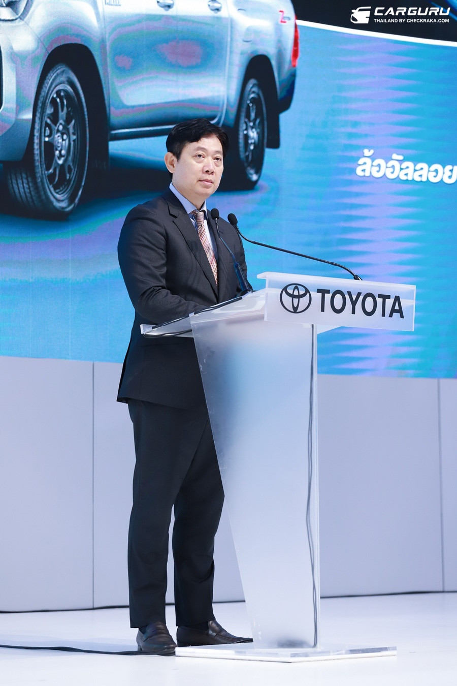 “ที่สำคัญทุกท่านจะได้สัมผัสมิติใหม่กับรถของเราที่ตอบรับทุกไลฟ์สไตล์ และความต้องการของลูกค้า นำทีมโดย All-New Toyota Yaris ATIV ครั้งแรกกับรถที่เป็นที่ชื่นชอบของคนไทยที่นำมาจัดแสดงในงานนี้ มาพร้อมกับสิ่งที่ดีที่สุดเพื่อคนไทย ทั้งในด้านผลิตภัณฑ์ที่จัดเต็มในทุกฟังก์ชั่นด้วยผลิตภัณฑ์ที่ดีที่สุด The Best Product พร้อมประสบการณ์ที่ดีที่สุด The Best Experience ทั้งประสบการณ์ในการซื้อ และประสบการณ์ในการใช้งาน ที่ทำให้ลูกค้าภาคภูมิใจในการเป็นเจ้าของ รวมถึงการสนับสนุนการเดินทางด้วยเทคโนโลยีล่าสุด Best Mobility Support ส่งเสริมการเดินทางอย่างไร้ขีดจำกัดให้กับลูกค้า โดยการใช้ Connected technology ในการอำนวยความสะดวกเสมือนเพื่อนร่วมทาง”