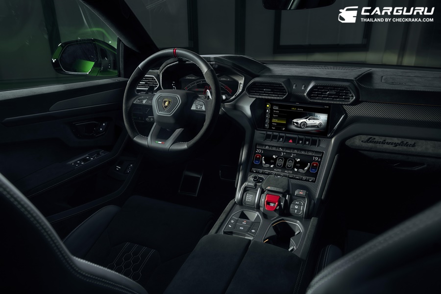 การออกแบบห้องโดยสารภายในตกแต่งด้วย Alcantara สีดำ Nero Cosmus เป็นมาตรฐาน พร้อมงานเย็บเบาะนั่งหกเหลี่ยมในสไตล์ “Performante Trim” นอกจากนี้ยังเลือกออปชันเสริมได้จากธีมการตกแต่งด้วยหนังทั้งคัน และสีสันภายใน โดยสามารถเลือกสไตล์ “Performante Trim” ให้ครอบคลุมทั้งในส่วนประตู เส้นแนวหลังคา พนักพิง และผนังด้านหลังห้องโดยสาร รวมถึงโปรแกรมการตกแต่งเฉพาะแบบ Ad Personam ของลัมโบร์กินีที่มีตัวเลือกวัสดุคาร์บอนไฟเบอร์ผิวด้านเพื่อการตกแต่งภายใน มือจับประตูสีแดง และขอบประตูพร้อมโลโก้ Ad Personam สำหรับพวงมาลัย Alcantara และหนังสีดำตกแต่งในโทนสีดำด้านให้เข้ากับห้องโดยสารธีมอลูมิเนียมชุบดำ สำหรับออปชั่น “Dark Package” จะสามารถเลือกการตกแต่งโทนสีดำด้านให้ครอบคลุมรายละเอียดของห้องโดยสารส่วนอื่น ซึ่งรวมถึงส่วนก้านของแผงควบคุมกลาง TAMBURO ที่ควบคุมฟังก์ชั่นทั้งปุ่มเปิด/ปิดเครื่องและตัวเลือกโหมดการขับขี่ต่าง ๆ ส่วนการแสดงผลกราฟิก HMI เป็นแบบใหม่ที่ออกแบบสำหรับ Urus Performante โดยเฉพาะ