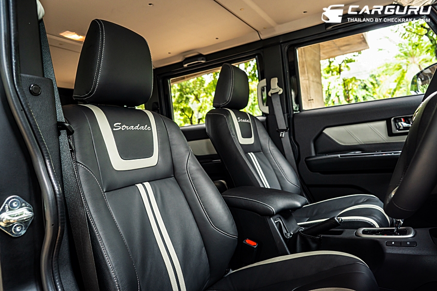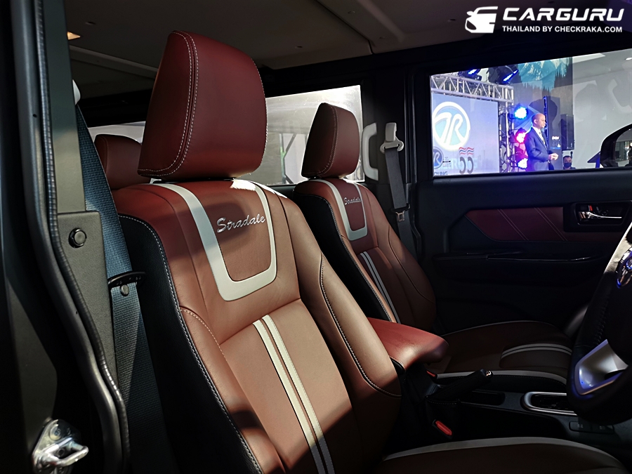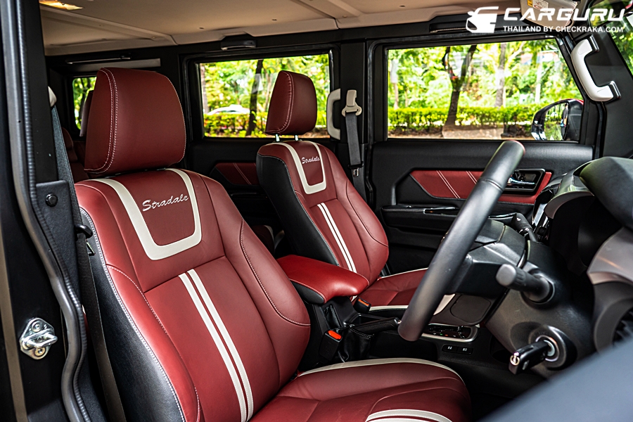 - ภายในตกแต่งด้วยสีทูโทนได้แก่หนังแท้และไวนิลสีแดงสำหรับสี RED-WHITE EDITION และ สีดำสำหรับสี BLACK-GOLD EDITION พร้อมแถบหนังแท้สีขาวเท่า พร้อมปักโลโก้รุ่น Stradale ที่เบาะคู่หน้า