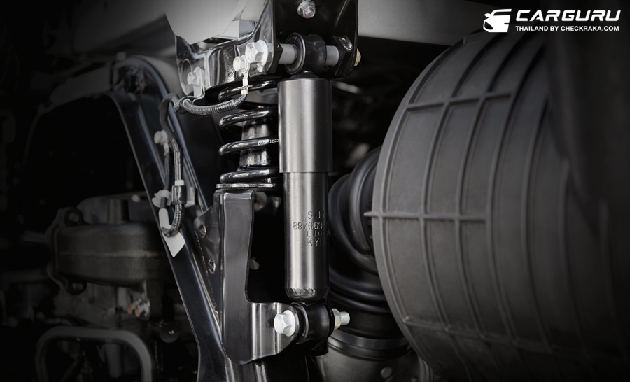• ช่วงล่างแบบแหนบและแขนรับแรงบิดรูปตัว V (V-Type Torque Rod) ลดการสั่นสะเทือน ช่วยให้เกาะถนน และทรงตัวได้ดี