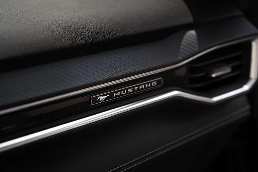 ภายใต้รูปลักษณ์ภายนอกอันไร้ที่ติของฟอร์ด มัสแตง เจเนอเรชันที่ 7 คือห้องโดยสารภายในที่มีแผงหน้าปัดซึ่งใช้เทคโนโลยีล้ำสมัยที่สุด และตอบโจทย์ผู้ขับขี่ที่สุดเท่าที่ฟอร์ด มัสแตงเคยมีมา ด้วยจอโค้งที่แสดงผลแบบต่อเนื่อง 2 จอ ปรับเปลี่ยนเพื่อดูข้อมูลที่ต้องการได้อย่างรวดเร็ว ซึ่งได้แรงบันดาลใจมาจากเครื่องบินรบ